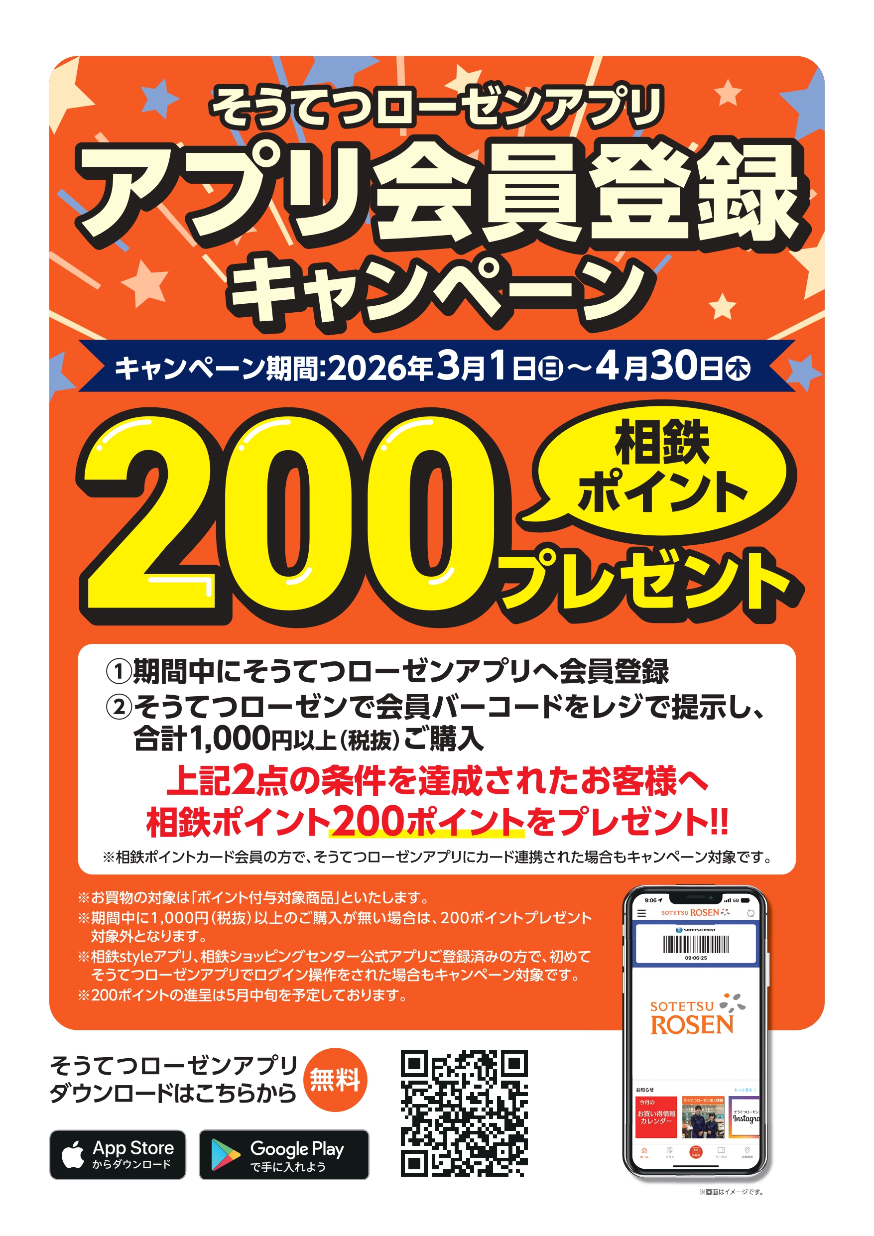 アプリ・相鉄ポイントカードの提示でポイントがたまります。1ポイント=1円としてお買い物にご利用いただけます。