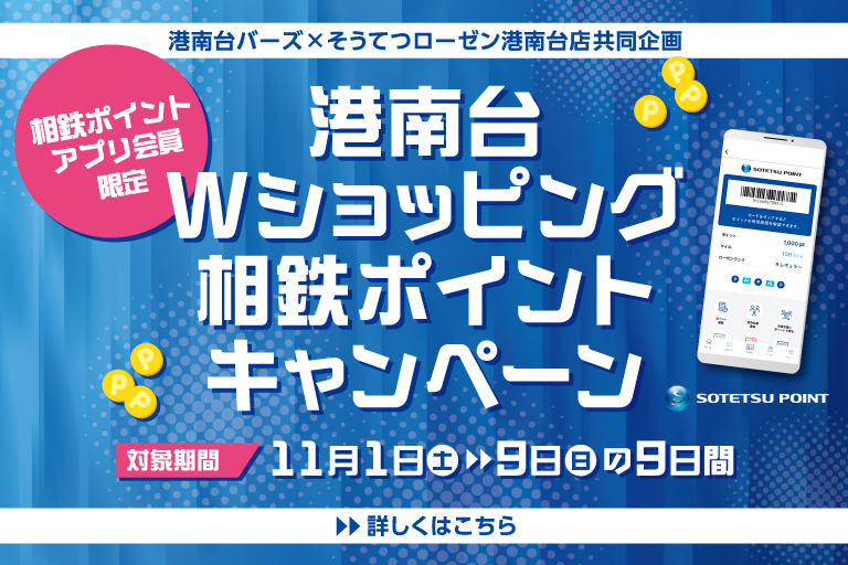 【アプリ会員さま限定】港南台バーズ×そうてつローゼン港南台店共同企画 「港南台Wショッピング相鉄ポイントキャンペーン」