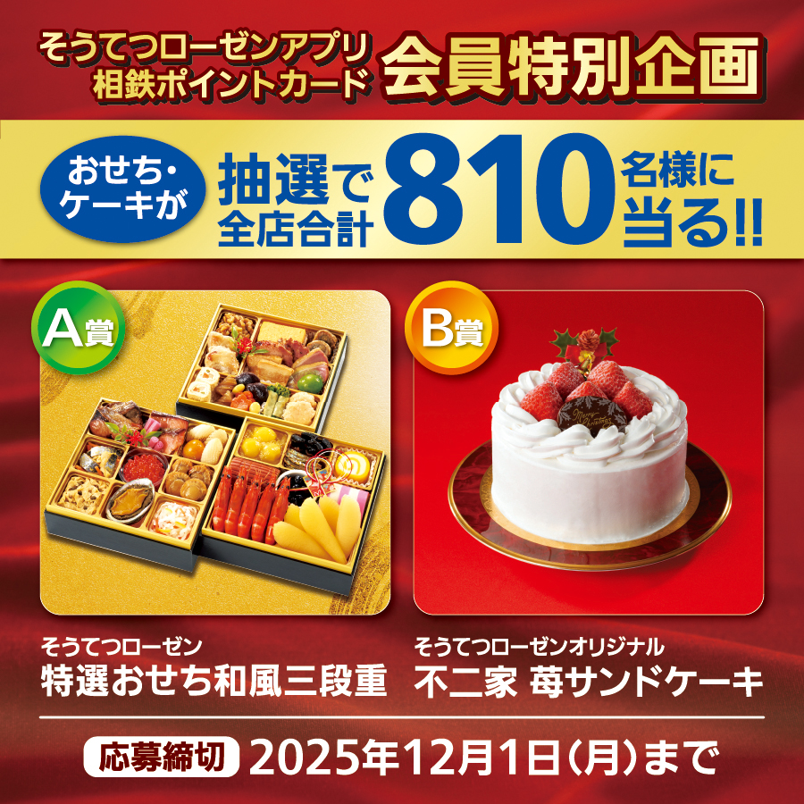 抽選で全店合計810名様に当たる!!おせち・クリスマスケーキプレゼントキャンペーン